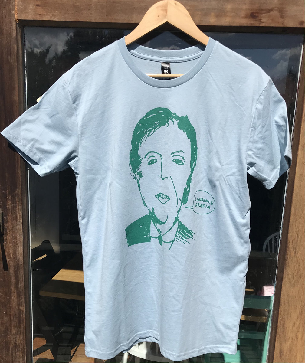 Macca's back. The unflappably cheery Beatles melodist is stanning Lawrence Arabia in this sophisticated ink sketch by Lawrence Arabia himself. Darker pink ink on a Pink AS Colour Staple Tee.